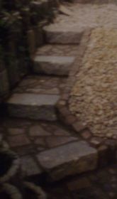 Treppe aus Kalksteinplatten in die Stützmauer integriert. Nr.T16